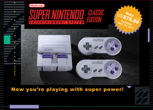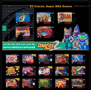 Nintendo ont confirmé une rumeur qui circulait depuis un bon moment. La Super Nintendo Entertainment System version mini verra bel et bien le jour et cela le 29 septembre 2017 au coût de 99,99$ au Canada! Contrairement à la NES Classic Mini, une seconde manette sera fourni dans la boîte, ce qui est une excellente nouvelle.  Il y aura 21 jeux inclus dans la mini console dont le jeu jamais publié Starfox 2! Voici en image les autres jeux prévu: